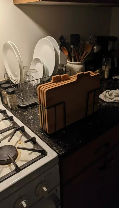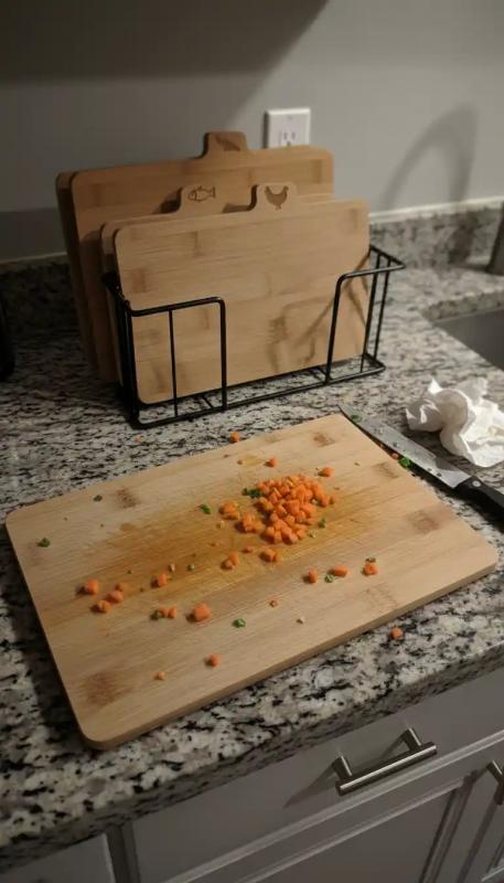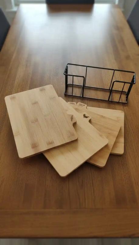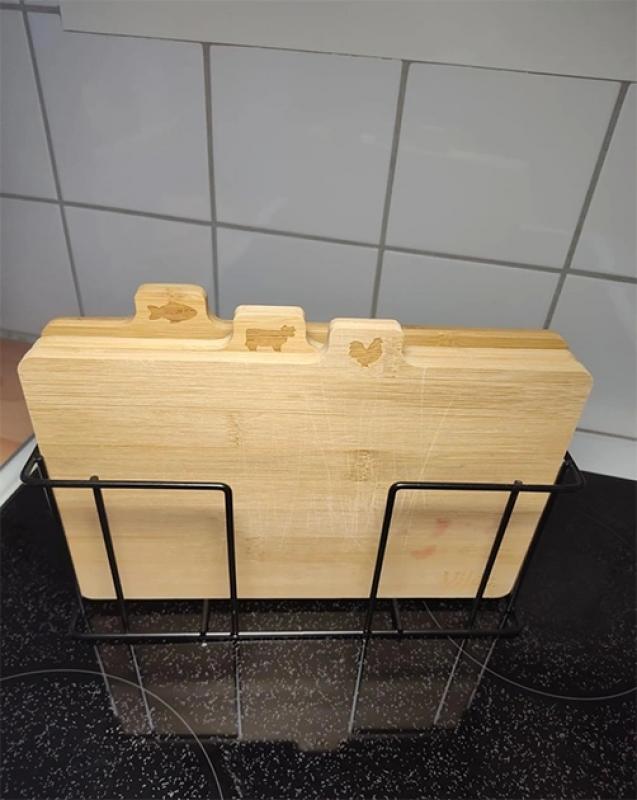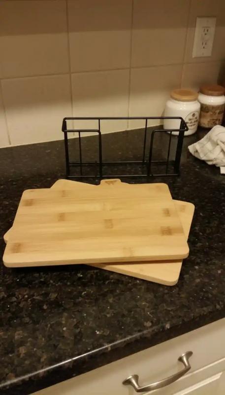 Questo set è più conveniente di quanto mi aspettassi. Le assi sono sufficientemente spesse da sembrare resistenti, la superficie è liscia per tagliare e il supporto le mantiene riposte in modo ordinato anziché sparse ovunque. Rende la preparazione del cibo un po' più strutturata e igienica.