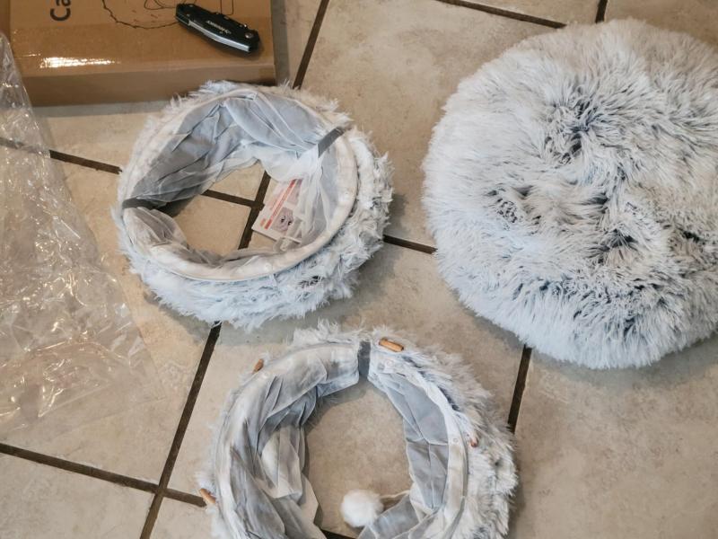 Abbiamo quattro gatti domestici, tra cui un gatto anziano, un adulto salvato da una vita randagia e due gattini salvati. Tutti e quattro ADORANO questo tunnel come luogo dove giocare e nascondersi. È stato semplice da montare.