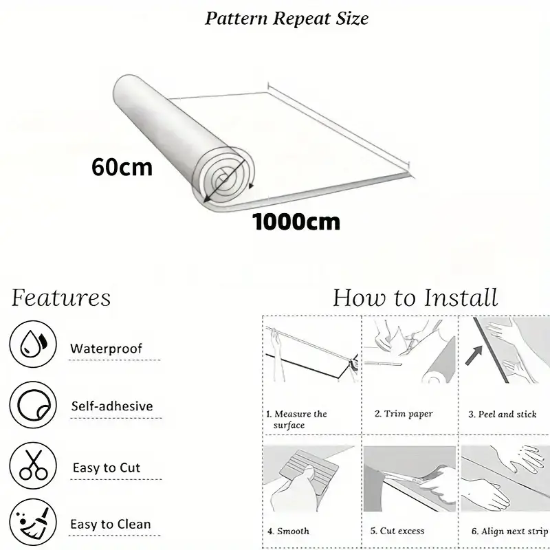 MarbleLux™ marmora raksta grīdas uzlīmes - 10m x 60cm (6m²)