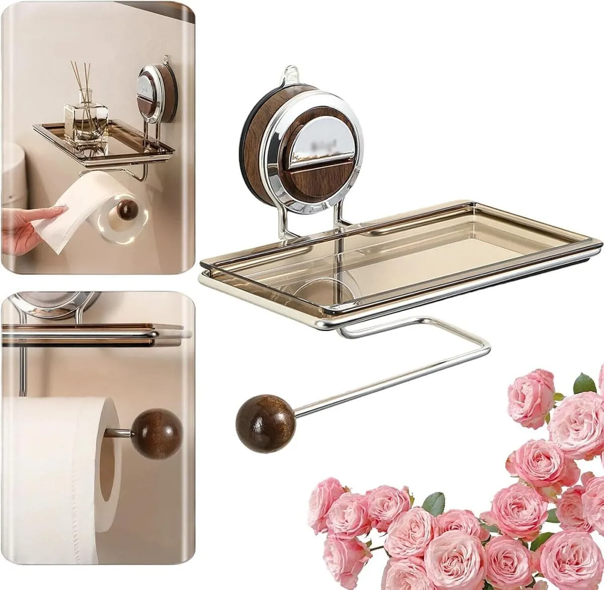 VeloraLuxe™ suport hârtie igienică cu prindere prin vacuum și poliță