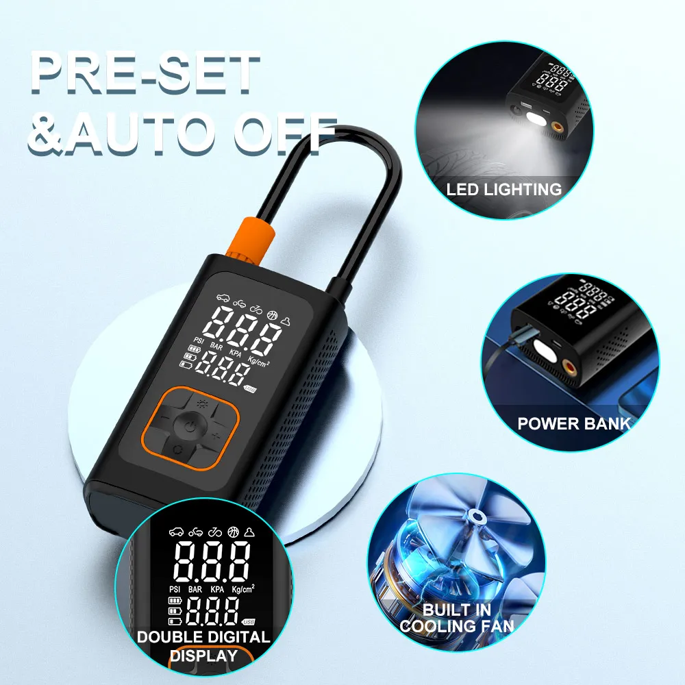 Преносимата електрическа помпа PumpRide™ прави напомпването на гуми, велосипеди и спортно оборудване безпроблемно. Компактна и лесна за използване, тя е идеална за пътуване, спешни случаи или ежедневна употреба. С вградените предварителни настройки и LED светлина ще бъдете готови за всичко. Дръжте го в колата или чантата си за бързо и надеждно напомпване, където и да отидете!