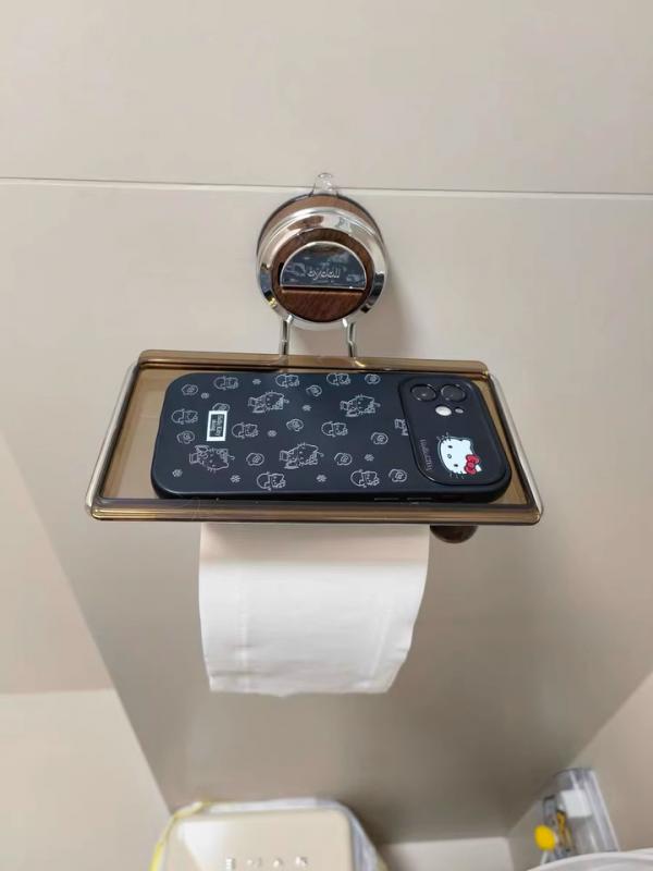 Ještě jsem neviděl držák na toaletní papír s přísavkou, musel jsem to vyzkoušet, protože jsem nechtěl vrtat do dlaždic díry. Jsem ohromen designem. Dodatečná police je skvělý bonus :)
