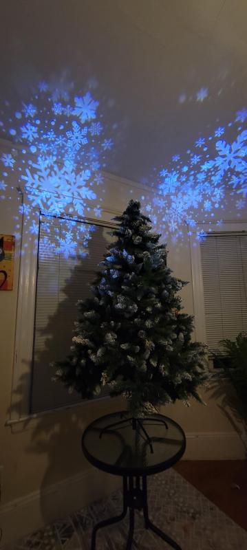 Nincs időm felakasztani a fényeket a házamra. Ezért vettem ezt, a lebegő hópelyhek annyira menőnek tűnnek. Van hozzá egy távirányító. Szabályozhatod, milyen gyorsan szeretnéd őket mozgatni. Legalább így van némi díszítés, kevés időráfordítással... csak vegyél egy ilyet.